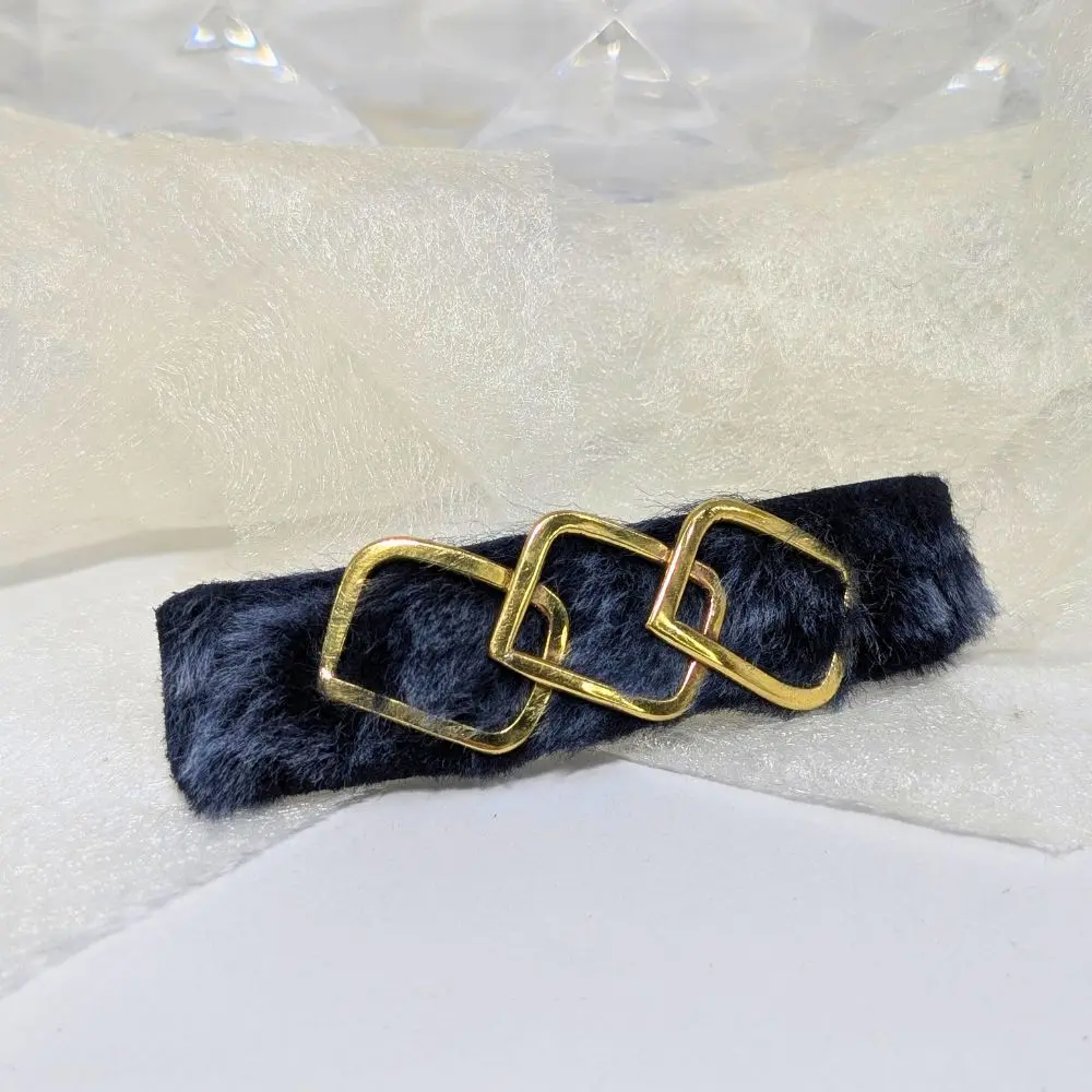 LA BARRETTE LAINE DE MOUTON a de belles formes originales. Admirez le beau contraste entre la couleur or et le bleu profond de la laine de mouton véritable. C’est un petit bijou pour tenir vos cheveux.