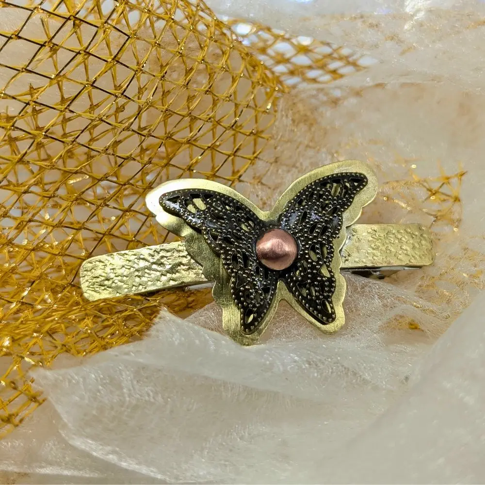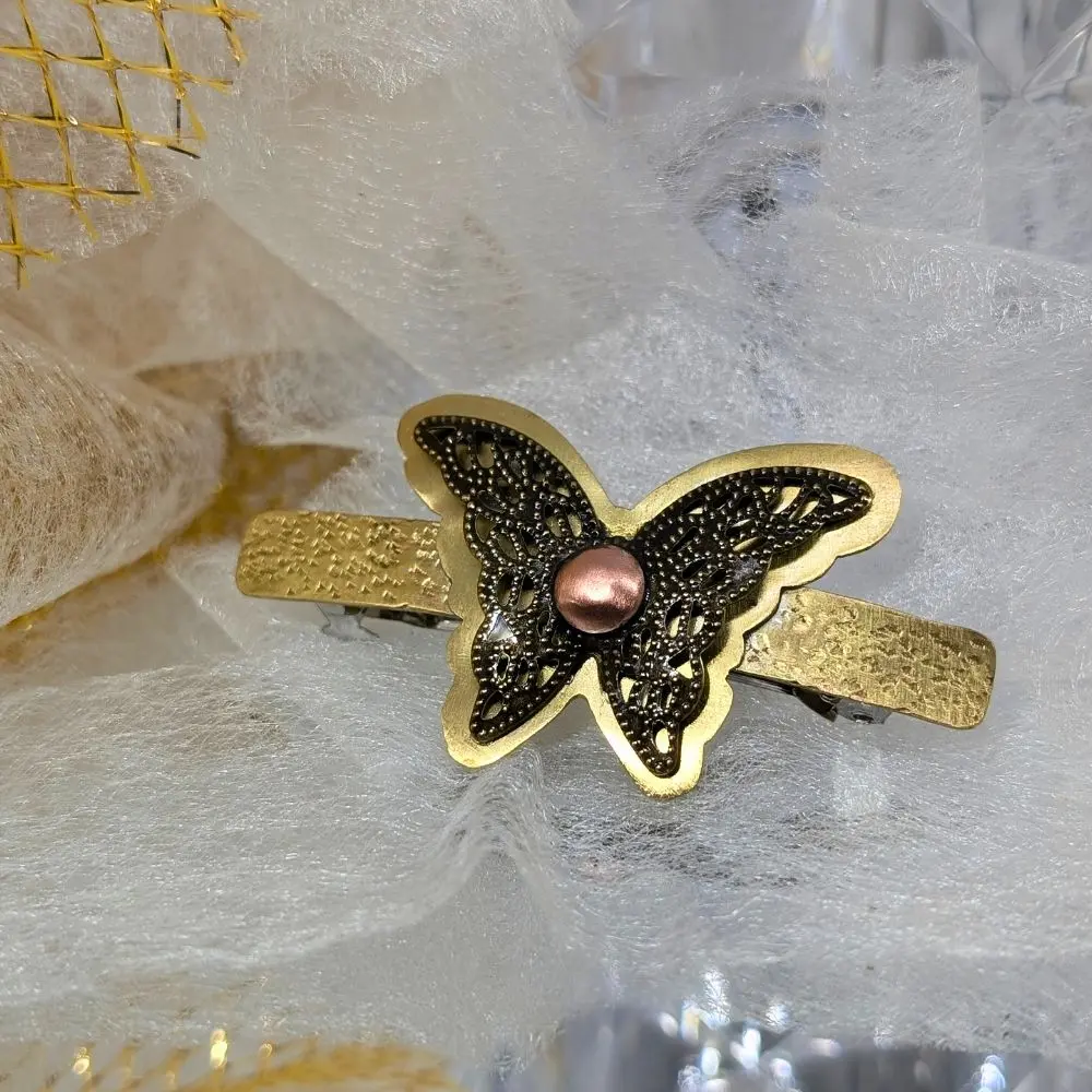 LA BARRETTE PAPILLON pour cheveux a une adorable estampe couleur bronze. C’est un bijou pour vos coiffures et une création des plus originales pour mettre en valeur votre chevelure.